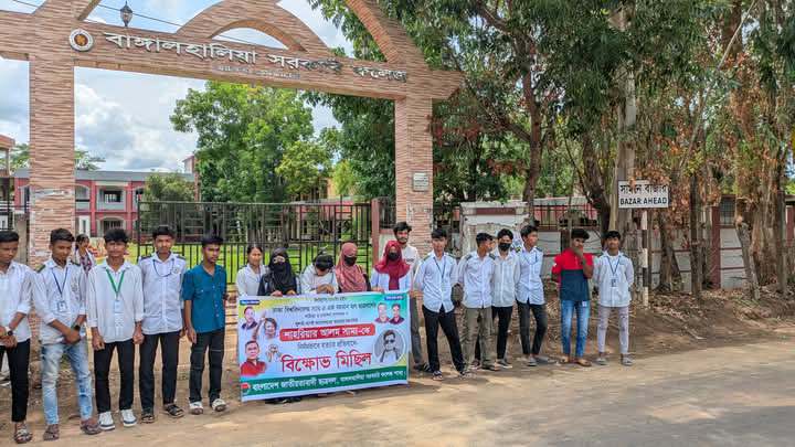 বাঙ্গালহালিয়া সরকারি কলেজে ঢাবি শিক্ষার্থী সাম্যের হত্যাকাণ্ডের প্রতিবাদে বিক্ষোভ মিছিল