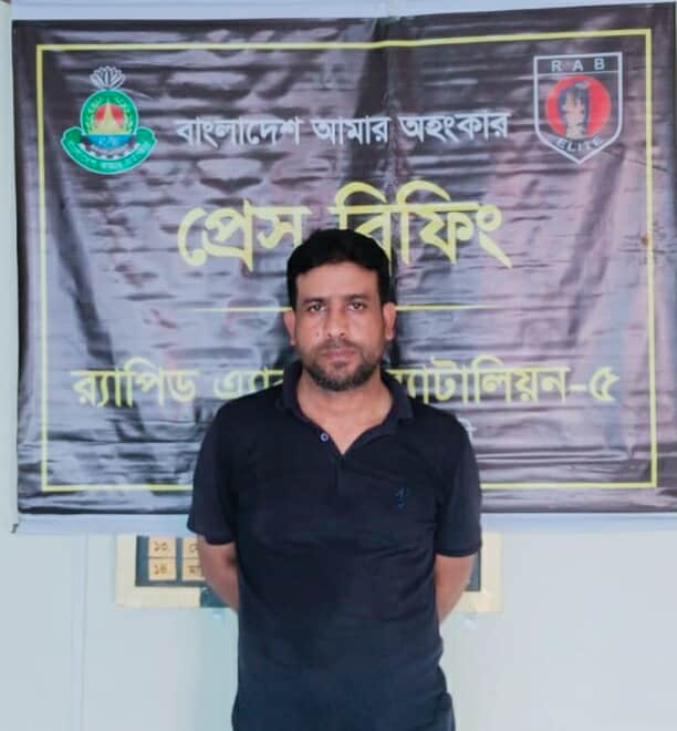 গত শুক্রবার (১৩ জুন) দুপুর সাড়ে ৩টার দিকে গোপন সংবাদের ভিত্তিতে রাজশাহী রেলওয়ে স্টেশন এলাকায় অভিযান চালিয়ে তাকে গ্রেফতার করে র্যাব-৫।