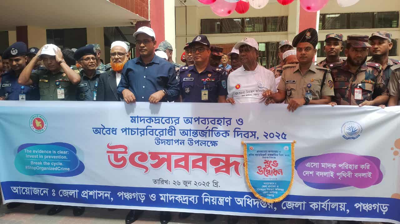 স্নিগ্ধা খন্দকার স্টাফ রিপোর্টারঃ“এসো মাদক পরিহার করি, দেশ বদলাই পৃথিবী বদলাই”—এই প্রতিপাদ্যকে সামনে রেখে পঞ্চগড়ে পালিত হয়েছে আন্তর্জাতিক মাদকদ্রব্যের অপব্যবহার ও অবৈধ পাচারবিরোধী দিবস।