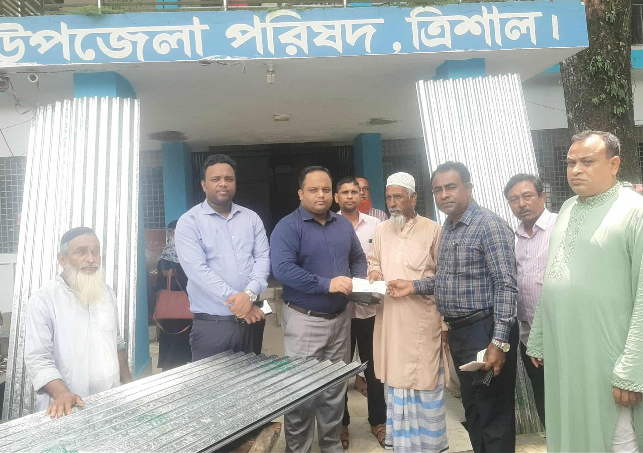ত্রিশালে প্রাকৃতিক দুর্যোগে ক্ষতিগ্রস্ত দুস্থ, অসহায় পরিবারকে ঢেউটিন ও চেক বিতরণ