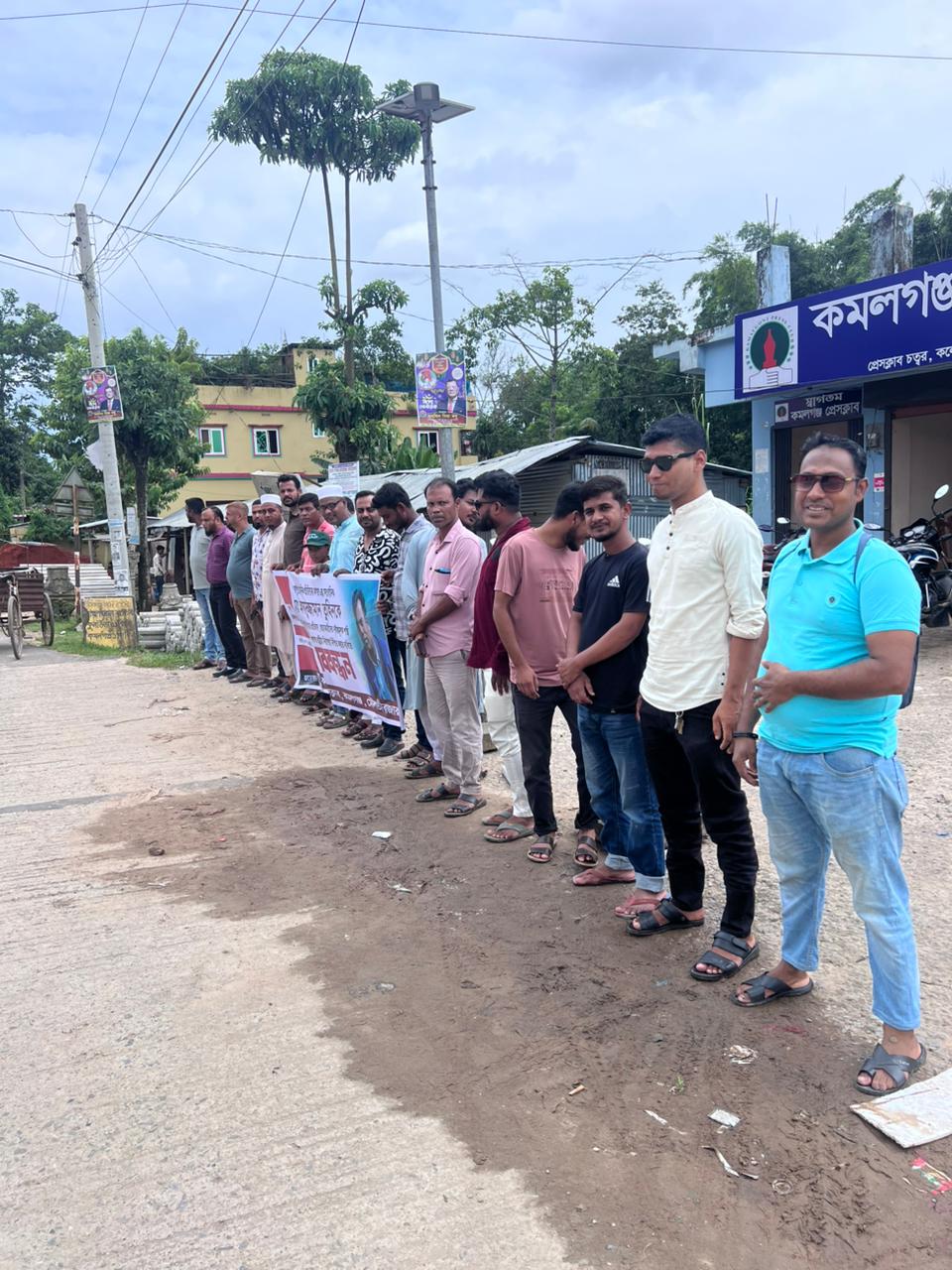 শনিবার (০৯ আগষ্ট) সকাল ১১টায় কমলগঞ্জ প্রেসক্লাব প্রাঙ্গণে আয়োজিত এ মানববন্ধনে সভাপতিত্ব করেন প্রেসক্লাবের আহ্বায়ক এম এ ওয়াহিদ রুলু এবং সঞ্চালনা করেন নির্মল এস পলাশ।