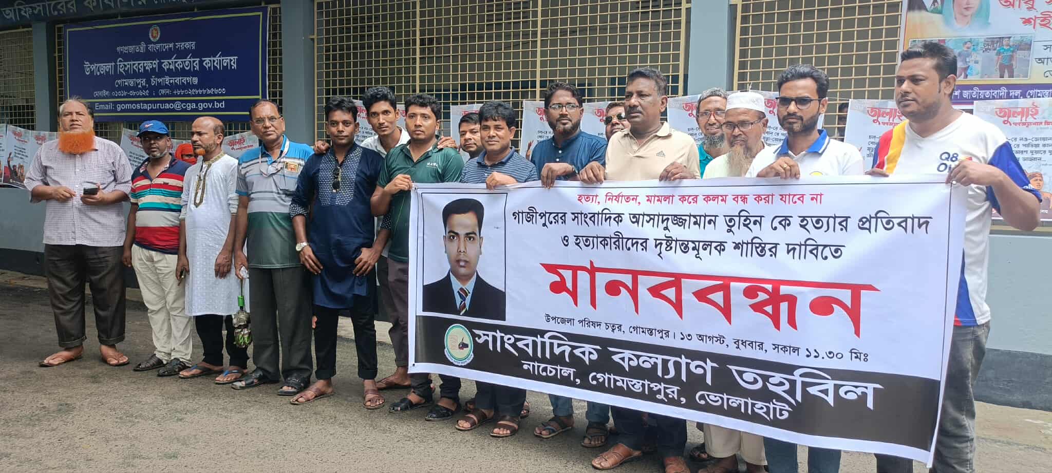 চাঁপাইনবাবগঞ্জে সাংবাদিক তুহিন হত্যার প্রতিবাদে মানববন্ধন