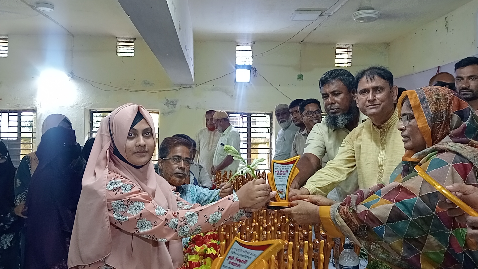 অনুষ্ঠান শেষে কৃতি শিক্ষার্থীদের হাতে সম্মাননা ক্রেস্ট তুলে দেওয়া হয়।