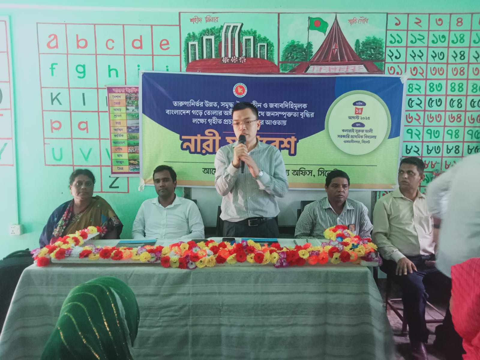হেলাল আহমদ, বালাগঞ্জ প্রতি নিধি : সিলেট জেলা তথ্য অফিসের উদ্যোগে ওসমানীনগর উপজেলার কলারাই সুরুজ আলী সরকারী প্রাথমিক বিদ্যালয়ে নারী সমাবেশ অনুষ্ঠিত হয়েছে। ১৪ আগষ্ট ২০২৫ইং আয়োজিত এ সমাবেশে প্রধান অতিথি হিসাবে উপস্থিত ছিলেন সিলেট জেলা লিগ্যাল এইড কর্মকর্তা, সিনিয়র সহকারী জজ বিশ্বেশ্বর সিংহ। বিশেষ অতিথি হিসাবে বক্তব্য রাখেন সিলেট জেলা তথ্য অফিসের সহকারী পরিচালক রকিবুল হাসান। অন্যান্যদের মধ্যে আলোচনা করেন প্রধান শিক্ষক গীতা চক্রবর্তী, নিরাপদ সভাপতি শাহাব উদ্দিন শাহিন। সভা পরিচালনা করেন তথ্য অফিসের ঘোষক লেবাস উদ্দিন। আলোচনায় শিক্ষা, স্বাস্থ্য, পুষ্টি, বাল্য বিয়ে, কর্মসংস্থান, সহ পারিবারিক সমস্যা, মামলা, বিচার, লিগ্যাল এইড কার্যক্রম, নিয়ে আলোচনা হয়।