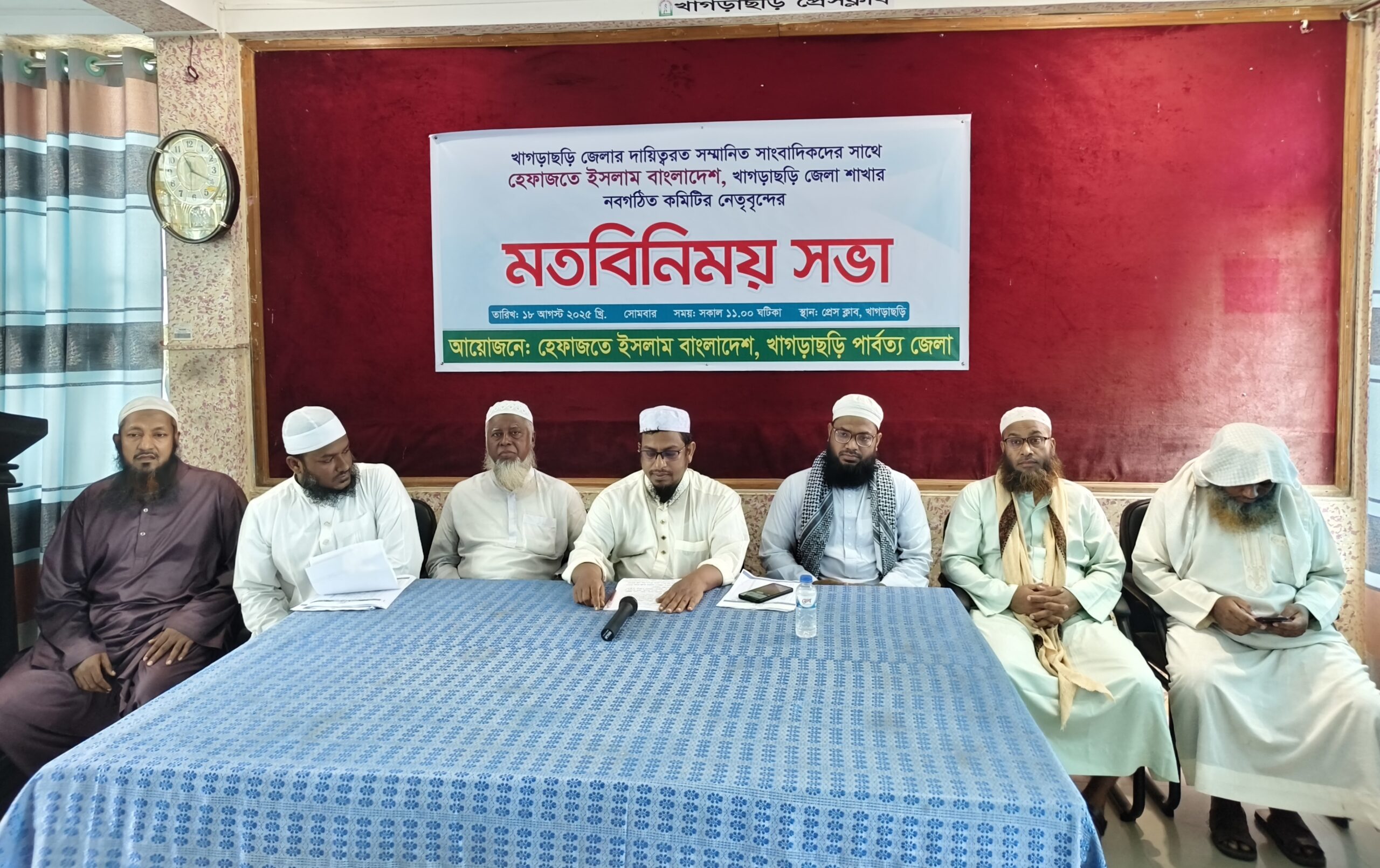 এসময় বক্তব্য রাখেন সংগঠনের সাধারণ সম্পাদক মুফতি শামীম হোসাইন ফারুকী, সাংগঠনিক সম্পাদক মাওলানা জামালুল হাসান এবং খাগড়াছড়ি প্রেসক্লাবের সাধারণ সম্পাদক এইচ এম প্রফুল্ল।