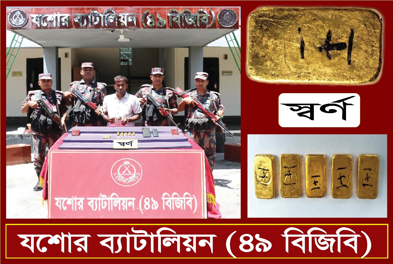 যশোর ব্যাটালিয়ন ৪৯ বিজিবির হাতে ৫ টি স্বর্ণের বারসহ কলারোয়ার আফছার আলী আটক।