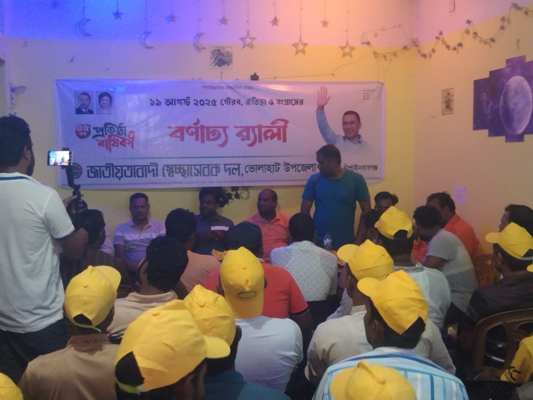 এর আগে জেলা জাতীয়তাবাদী স্বেচ্ছাসেবক দলের আহ্বায়ক মোঃ জামিউল হক সোহেল ও ভোলাহাট উপজেলা জাতীয়তাবাদী স্বেচ্ছাসেবক দলের আহ্বায়ক মোঃ আব্দুস সামাদের নেতৃত্বে একটি বর্ণাঢ্য রেলী নিয়ে প্রধান সড়ক প্রদক্ষিণ শেষে টেষ্টি ক্যাফে আলোচনা সভায় মিলিত হয়।