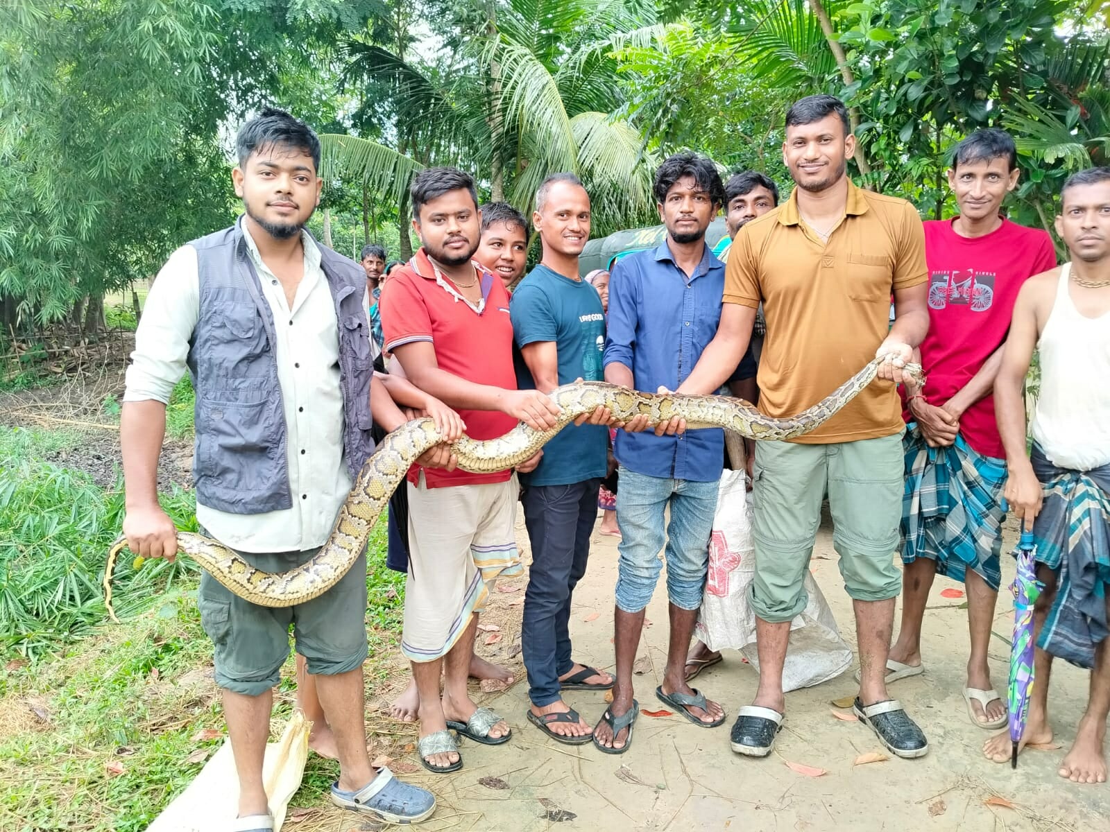 স্থানীয়রা জানান, ভোরে ধানক্ষেতে অজগরটি আটকা পড়ে। পরে সকাল সাড়ে ছয়টার দিকে তারা চঞ্চল গোয়ালাকে খবর দেন। তিনি ঘটনাস্থলে গিয়ে দেখতে পান, নেটের বেড়ায় সাপটি জড়িয়ে গেছে। সতর্কতার সঙ্গে নেট কেটে তিনি অজগরটিকে উদ্ধার করেন।