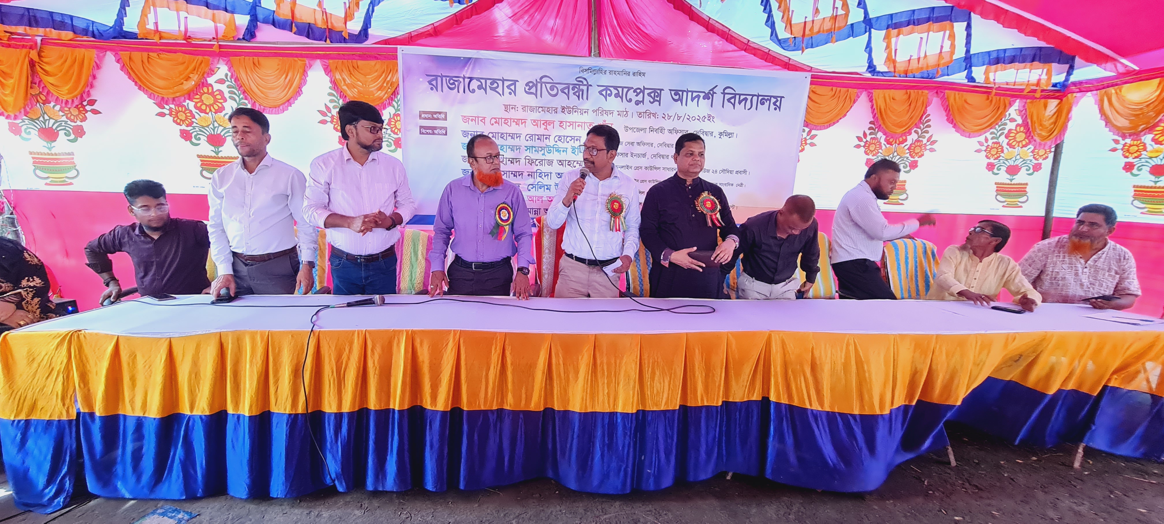 স্টাফ রিপোর্টার : কুমিল্লা দেবিদ্বার রাজামেহার প্রতিবন্ধী কমপ্লেক্সে আদর্শ বিদ্যালয়ের ভিত্তি প্রস্তর ও অভিভাবক সমাবেশ অনুষ্ঠিত হয়েছে। গতকাল ২৮শে আগস্ট রোজ বৃহস্পতিবার দেবিদ্বার ১১ নং  রাজামেহার ইউনিয়ন পরিষদের মাট প্রাঙ্গণে জাতীয় অনলাইন প্রেস কাউন্সিল সংগঠনের সাধারণ সম্পাদক নিউজ টুয়ান্টিফোর প্রতিনিধি মোহাম্মদ ফিরোজ এর সভাপতিত্বে ওই ভিত্তি প্রস্তর ও সমাবেশ অনুষ্ঠিত হয়।