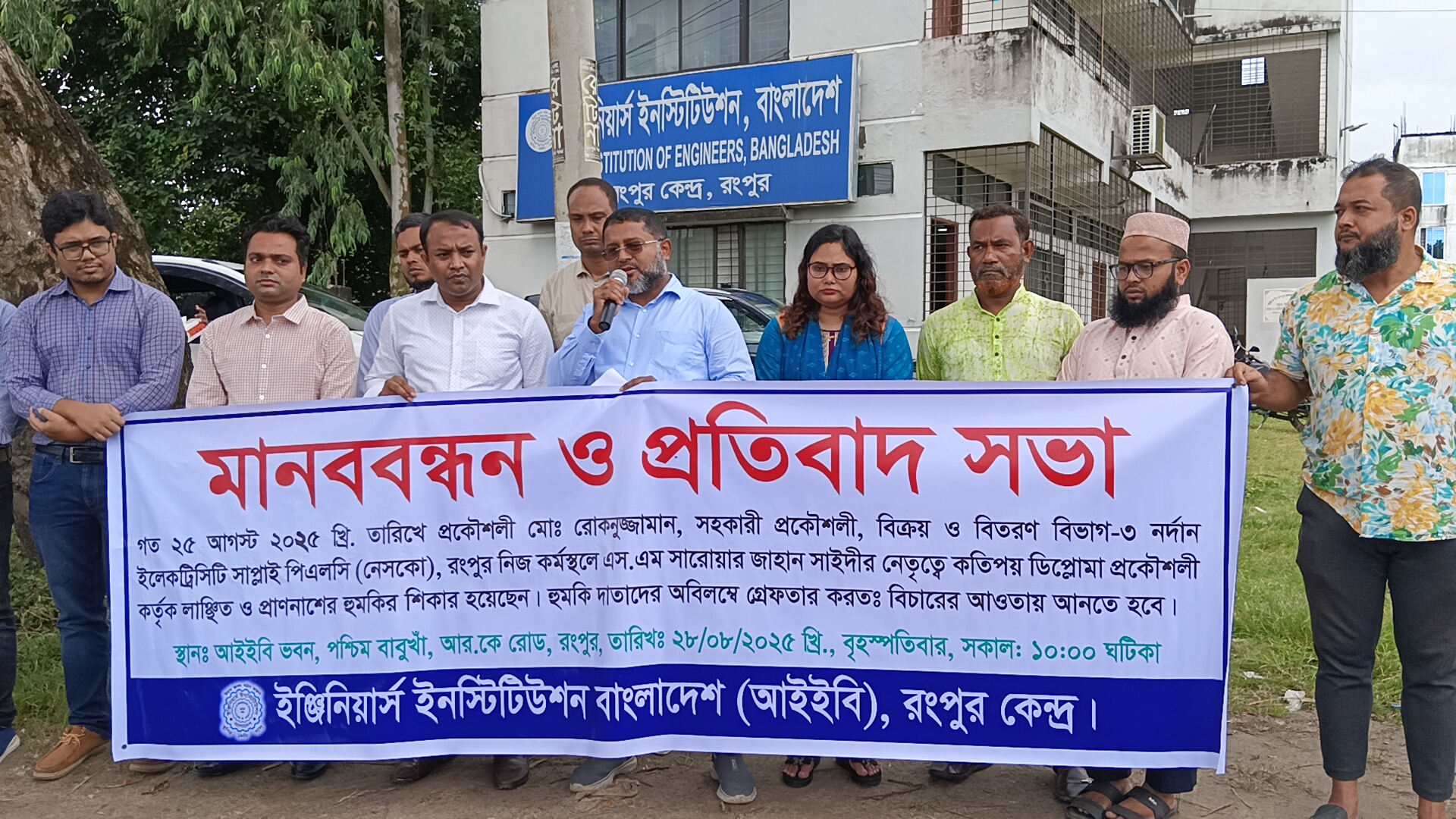 প্রকৌশলী রবিউল ইসলামের সভাপতিত্বে অনুষ্ঠিত প্রতিবাদ সমাবেশে বক্তব্য রাখেন সংগঠনের সাধারণ সম্পাদক প্রকৌশলী সাকিউল আলম, প্রকৌশলী আব্দুল মতিন, সদস্য প্রকৌশলী শাহরিয়ার মিরাজসহ অন্যরা।