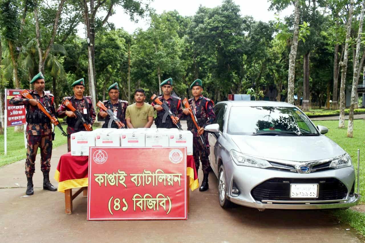 এক প্রেস বিজ্ঞপ্তির মাধ্যমে ৪১ বিজিবি জানায়, ২২ সেপ্টেম্বর ২০২৫ তারিখ আনুমানিক ১২টা ২০ ঘটিকায় গোয়েন্দা তথ্যের ভিত্তিতে লেঃ কর্নেল কাওসার মেহেদী, সিগন্যালস্, অধিনায়ক, কাপ্তাই ব্যাটালিয়ন (৪১ বিজিবি) এর নির্দেশক্রমে নায়েব সুবেদার মোঃ মাসুদ রানা এর নেতৃত্বে ব্যাটালিয়নের ১ নং জিপি গেইট সংলগ্ন চেক পোষ্টে একটি তল্লাশি অভিযান পরিচালনা করা হয় ।