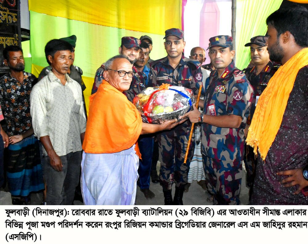 সীমান্তে পূজা মণ্ডপের নিরাপত্তায় ১২ প্লাটুন বিজিবি মোতায়ন, মন্ডপ পরিদর্শনে রংপুর রিজিয়ন কমান্ডার