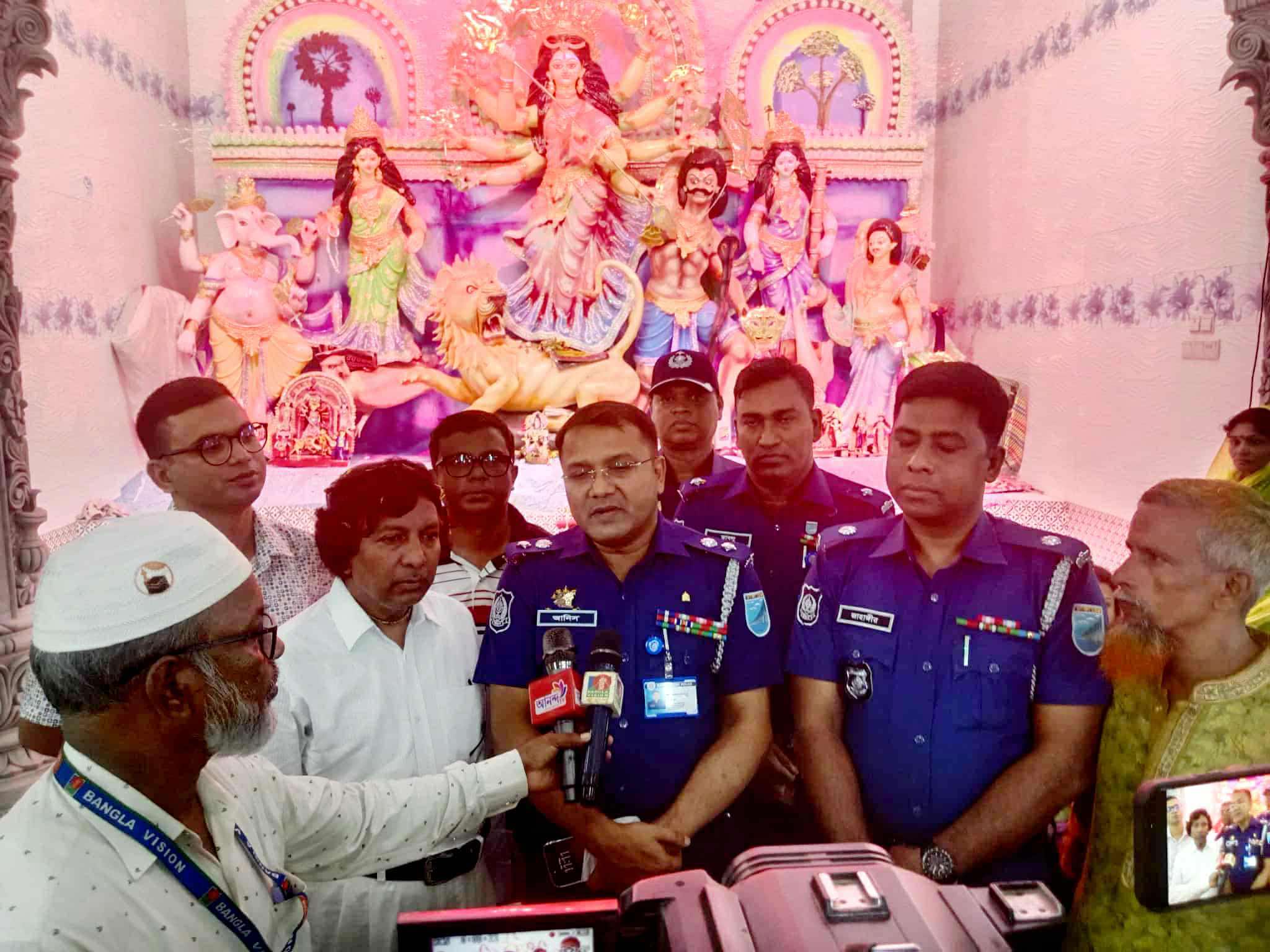কোথায়ও কোন অপ্রিতিকর ঘটনা যাতে না ঘটে তার জন্য আমরা অ্যাপসের ব্যবস্থা করেছি। এর মাধ্যমে আমরা দ্রুত খবর পেয়ে যাবো। একাধিক বার পূজা মন্ডপের কমিটিদের সাথে মত বিনিময় করেছি। মন্ডপে মন্ডপে জরুরি ফোন নান্বার পৌঁছে দিয়েছি। আশা করছি শান্তি পূর্ণ ভাবে এবার হিন্দু ধর্মালম্বী লোকেরা দুর্গোৎসব উদযাপন করতে পারবেন। তিনি আরো বলেন, এদেশে হিন্দু, মুসলিম, বৌদ্ধ, খৃষ্টান সবাই আমরা একত্রে বাস করি। সবাই আমরা ভাই ভাই।
