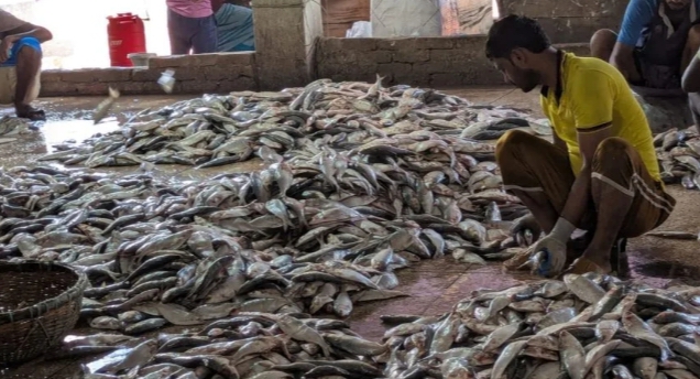 রাতে সাগরযাত্রা শেষে, সকালে বোট ভর্তি পচা ইলিশ নিয়ে ঘাটে জেলেদের ট্রলার