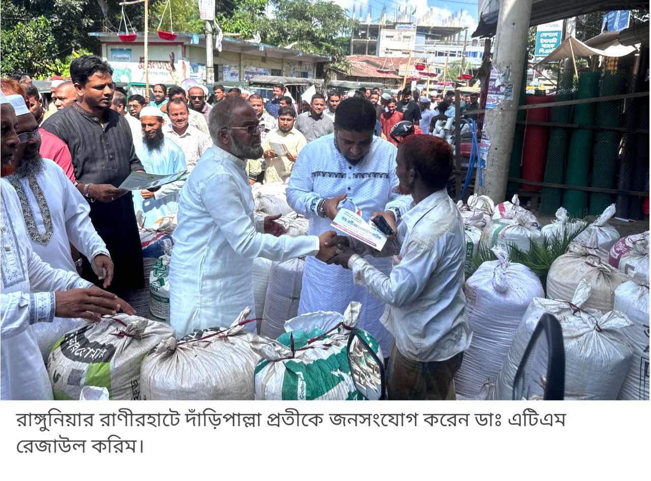 এর আগে রাণীরহাট বাজারের প্রতিটি গলি ও দোকানে ঘুরে ব্যবসায়ী, সাধারণ মানুষ ও স্থানীয় বিভিন্ন সংগঠনের সঙ্গে কুশল বিনিময় করেন ডা. এটিএম রেজাউল করিম।