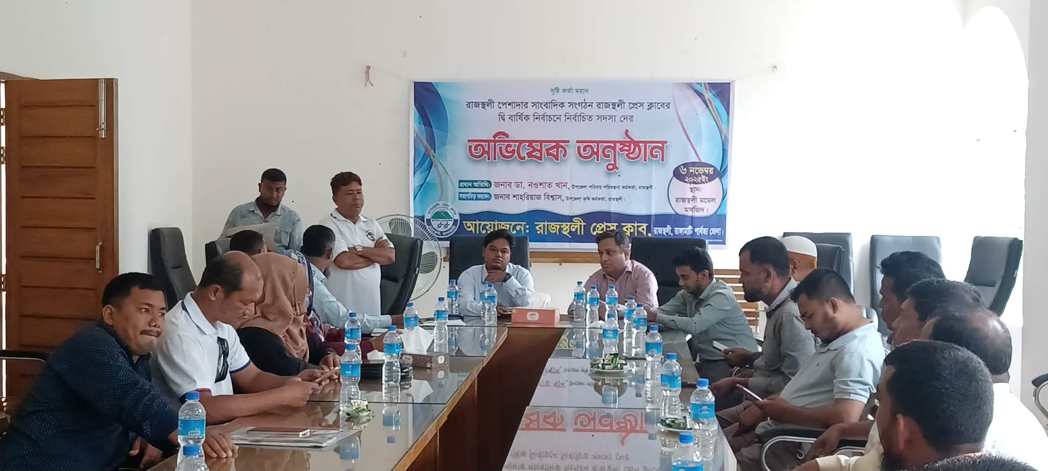 অনুষ্ঠিত অভিষেক অনুষ্ঠানে স্বাগত বক্তব্য রাখেন প্রেসক্লাবের উপদেষ্টা হারাধন কর্মকার,সভায় আরো উপস্থিত ছিলেন, উপজেলা কৃষি সম্প্রসারণ কর্মকর্তা, রাকিবুজ্জামান রাজু,দৈনিক নববাণী পত্রিকা তিন পার্বত্য জেলার ব্যুরো চীফ ডেভিড সাহা,উপজেলা বিএনপির সাংগঠনিক সম্পাদক বাবলু মিয়া, হিন্দু বৌদ্ধ খ্রীস্টান ঐক্য পরিষদের সহ সাংগঠনিক সম্পাদক জিকু কুমার দে , জামাতের সভাপতি মৌলনা ফরিদ আহম্মদ,ছাত্রদলের সদস্য সচিব সাজন তঞ্চঙ্গ্যা,কৃষক দলের সভাপতি বিষু সাহা, প্রমুখ।