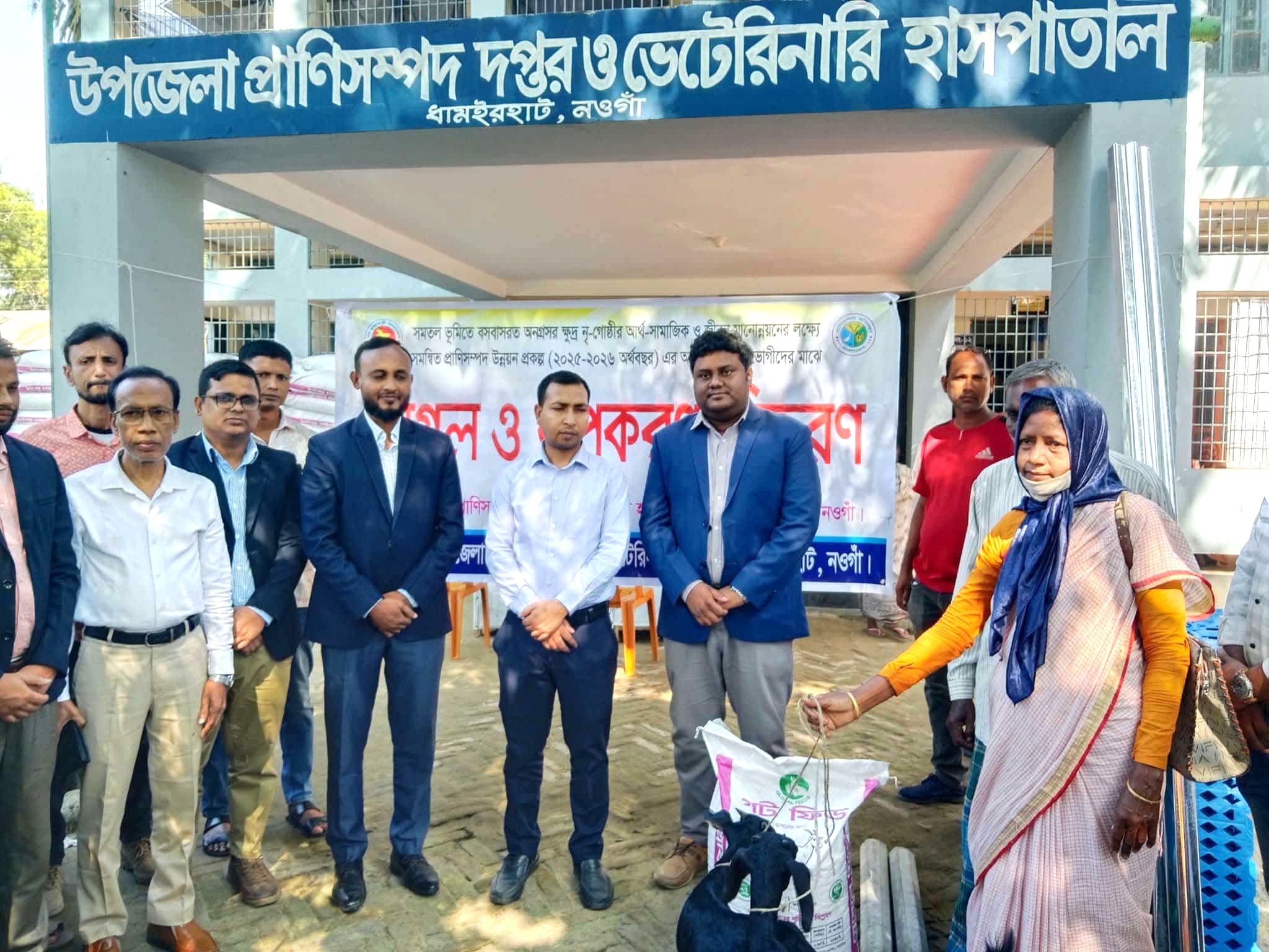 ধামইরহাটে প্রাণিসম্পদ অফিসের আয়োজনে ছাগল বিতরন