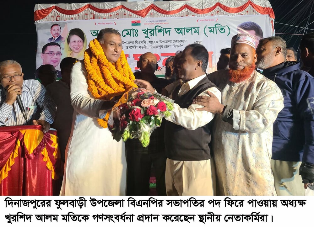 এর আগে গত সোমবার বিএনপির সিনিয়র যুগ্ম মহাসচিব রুহুল কবির রিজভির স্বাক্ষরিত এক চিঠিতে অধ্যক্ষ খুরশিদ আলম মতিকে ফুলবাড়ী উপজেলা বিএনপির সভাপতি পদে বহাল করা হয়।