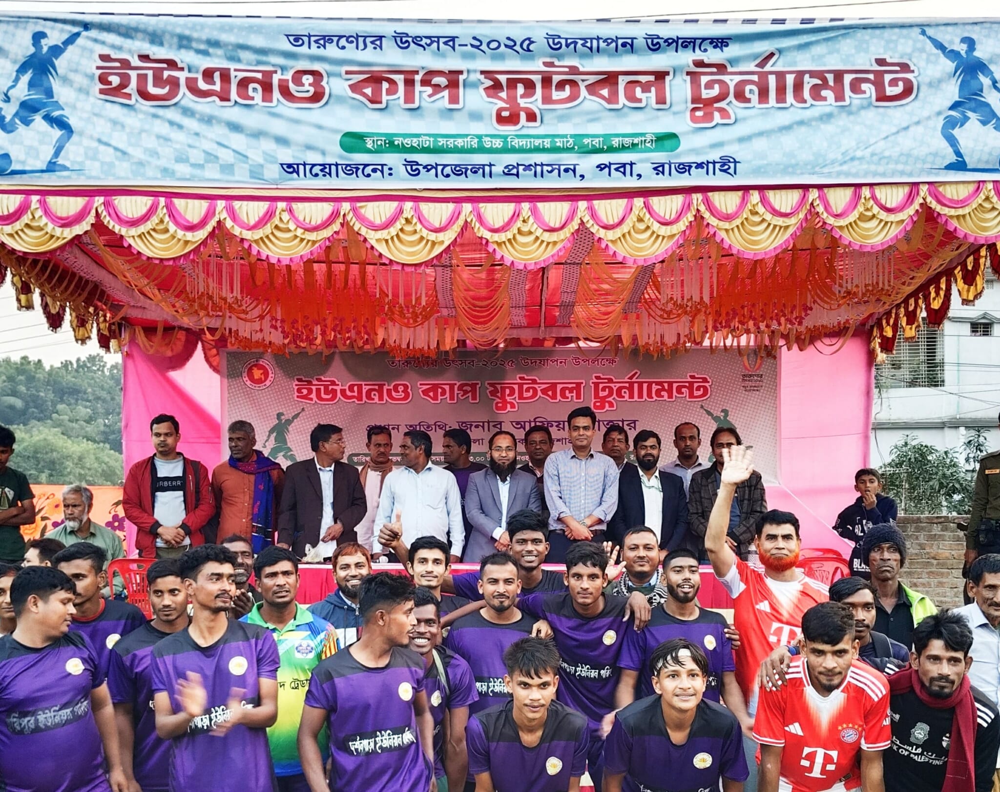 রাজশাহীর পবায় ১০টি ফুটবল টিমের ইউএনও কাপের ফাইনালে দর্শনপাড়া ইউপি দল