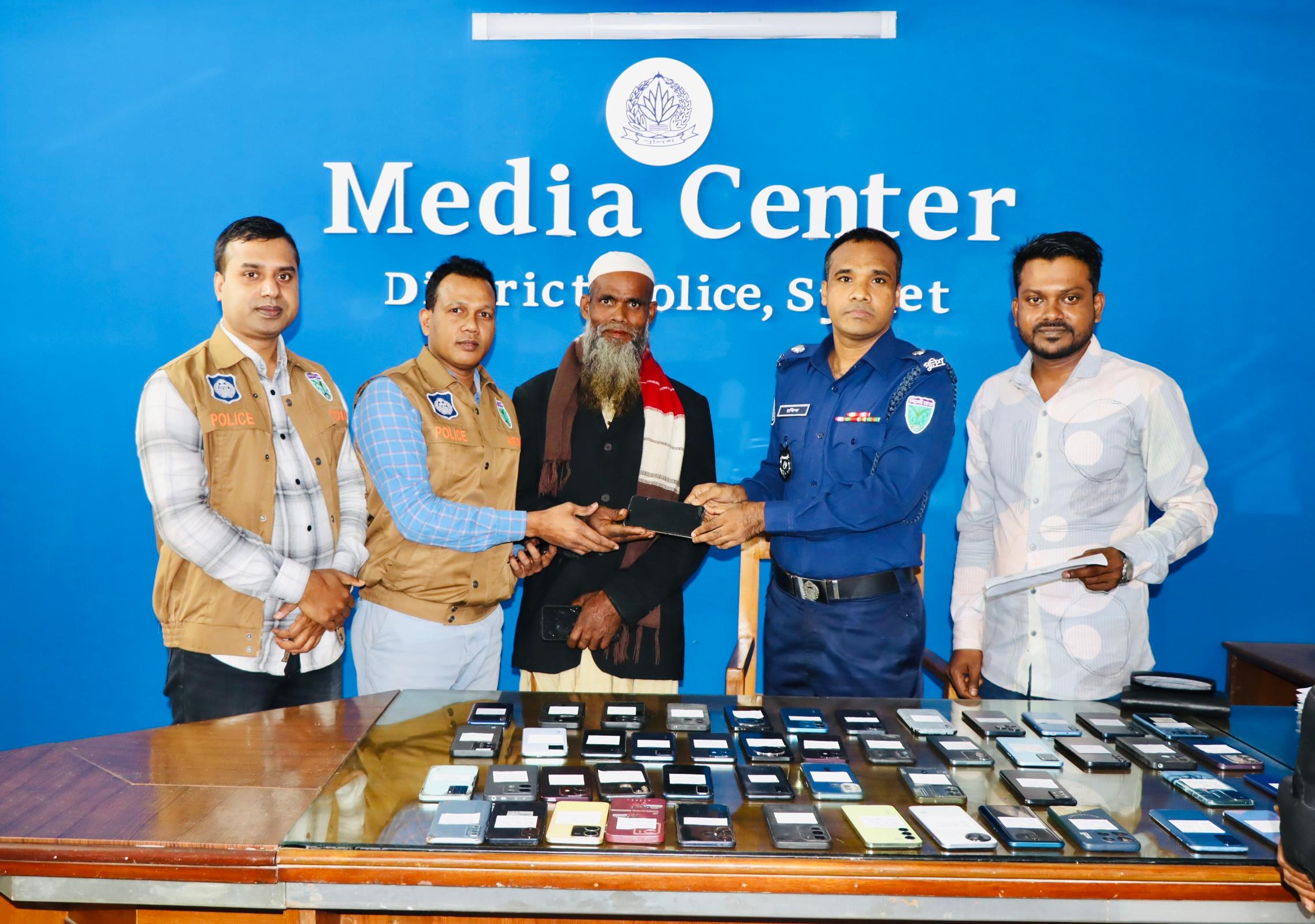সিলেট জেলা পুলিশের তথ্য-প্রযুক্তিনির্ভর দক্ষ অভিযানে ৬৭টি হারানো মোবাইল ফোন উদ্ধার করে প্রকৃত মালিকদের কাছে হস্তান্তর করা হয়েছে। জেলার বিভিন্ন থানায় সাধারণ ডায়েরি করা ভুক্তভোগীদের অভিযোগের পরিপ্রেক্ষিতে প্রযুক্তিগত বিশ্লেষণ, ট্র্যাকিং ও মাঠ পর্যায়ের অনুসন্ধানের মাধ্যমে এসব মোবাইল উদ্ধার করা হয়।