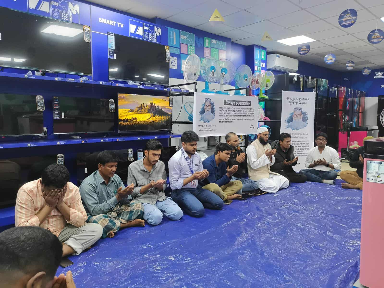 মিলাদ ও দোয়া পরিচালনা করেন বারহাট্টা মডেল মসজিদের মোয়াজ্জিন হাফেজ মোহাম্মদ রাকিব ও আরো উপস্থিত ছিলেন স্থানীয় গণ্যমান্য ব্যক্তিবর্গ সহ ওয়ালটন প্লাজার কর্মকর্তা কর্মচারী বৃন্দ।