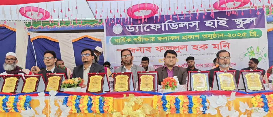 স্টাফ রিপোর্টারঃ সু-শিক্ষাই জাতির মেরুদণ্ড এই আদর্শকে ধারণ করে উৎসবমুখর পরিবেশে ঢাকার অদূরে দোহার উপজেলার মুকসুদপুর ইউনিয়নের অবস্থিত ড্যাফোডিলস্ হাইস্কুলে বার্ষিক পরীক্ষা-২০২৫ এর ফলাফল প্রকাশ করা হয়েছে।