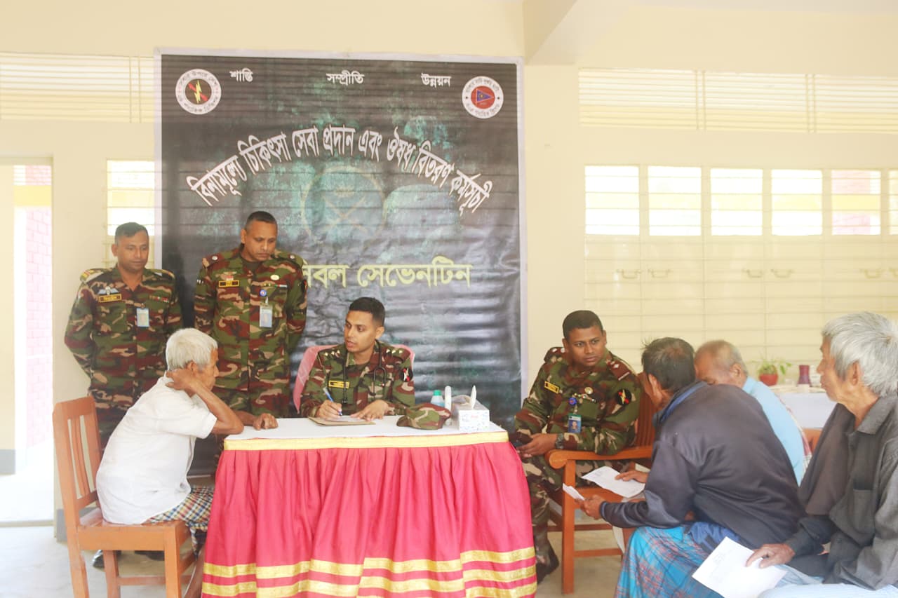 নানিয়ারচর সেনা জোন (১৭ ই বেংগল) এর উদ্যোগে চট্টগ্রামে দুর্গম পাহাড়ী অঞ্চলে বসবাসরত জনগণের স্বাস্থ্যসেনা নিশ্চিত করার লক্ষ্যে ‘সম্প্রীতি ও উন্নয়ন’ প্রকল্পের আওতায় ২৪ ডিসেম্বর ২০২৫, বুধবার অত্র জোনের অধীনস্থ ঘিলাছড়ি আর্মি ক্যাম্পের আওতাধীন ঘিলাছড়ি সরকারী প্রাথমিক বিদ্যালয় মাঠ প্রাঙ্গণে স্থানীয় দরিদ্র ও অসহায় রোগীদের জন্য বিনামূল্যে চিকিৎসা সেবা ও ঔষধ বিতরণ কর্মসূচির আয়োজন করা হয়।