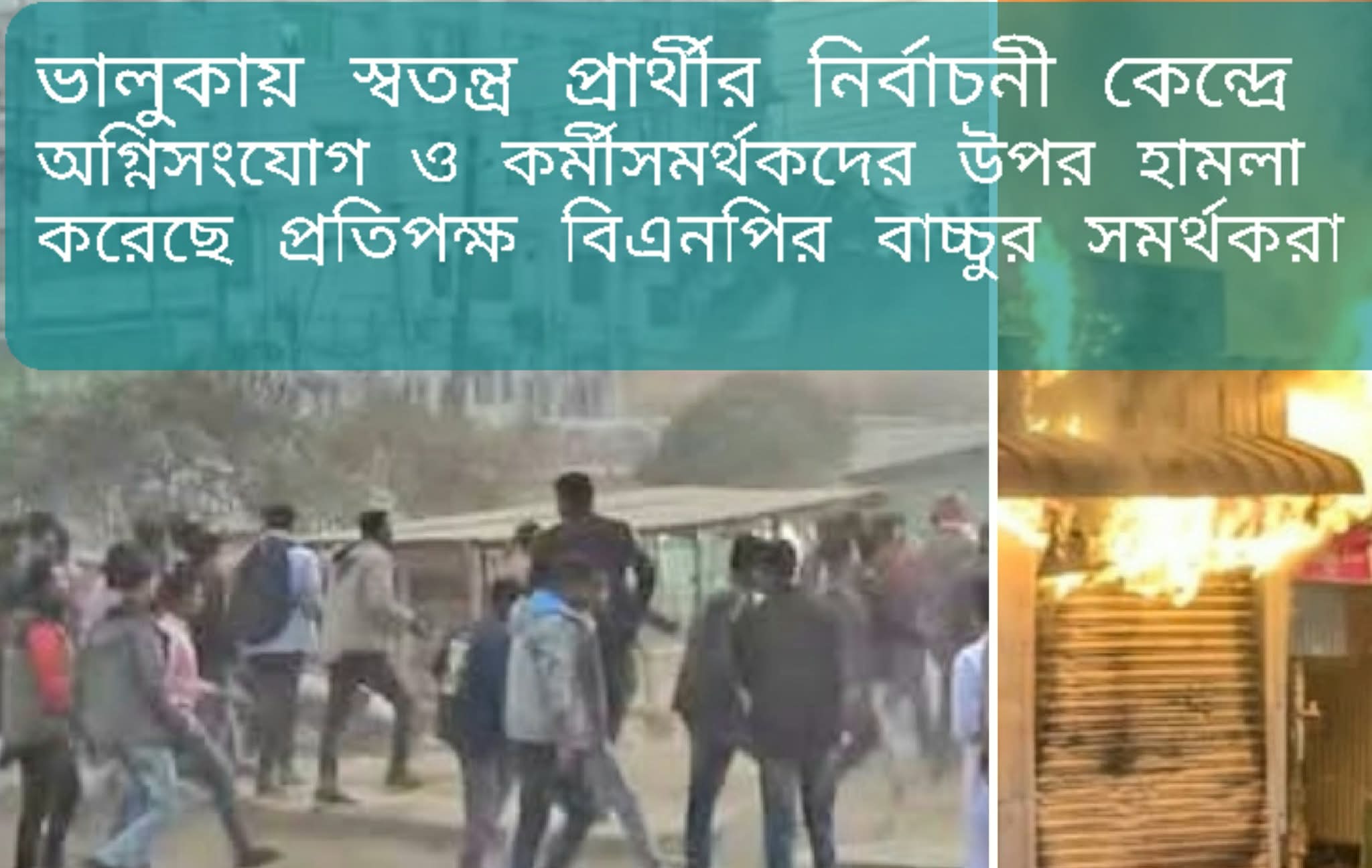 ভালুকায় স্বতন্ত্র প্রার্থীর প্রচারণা কেন্দ্রে ধানের শীষের কর্মীদের অগ্নিসংযোগ- হামলায় আহত-৩০