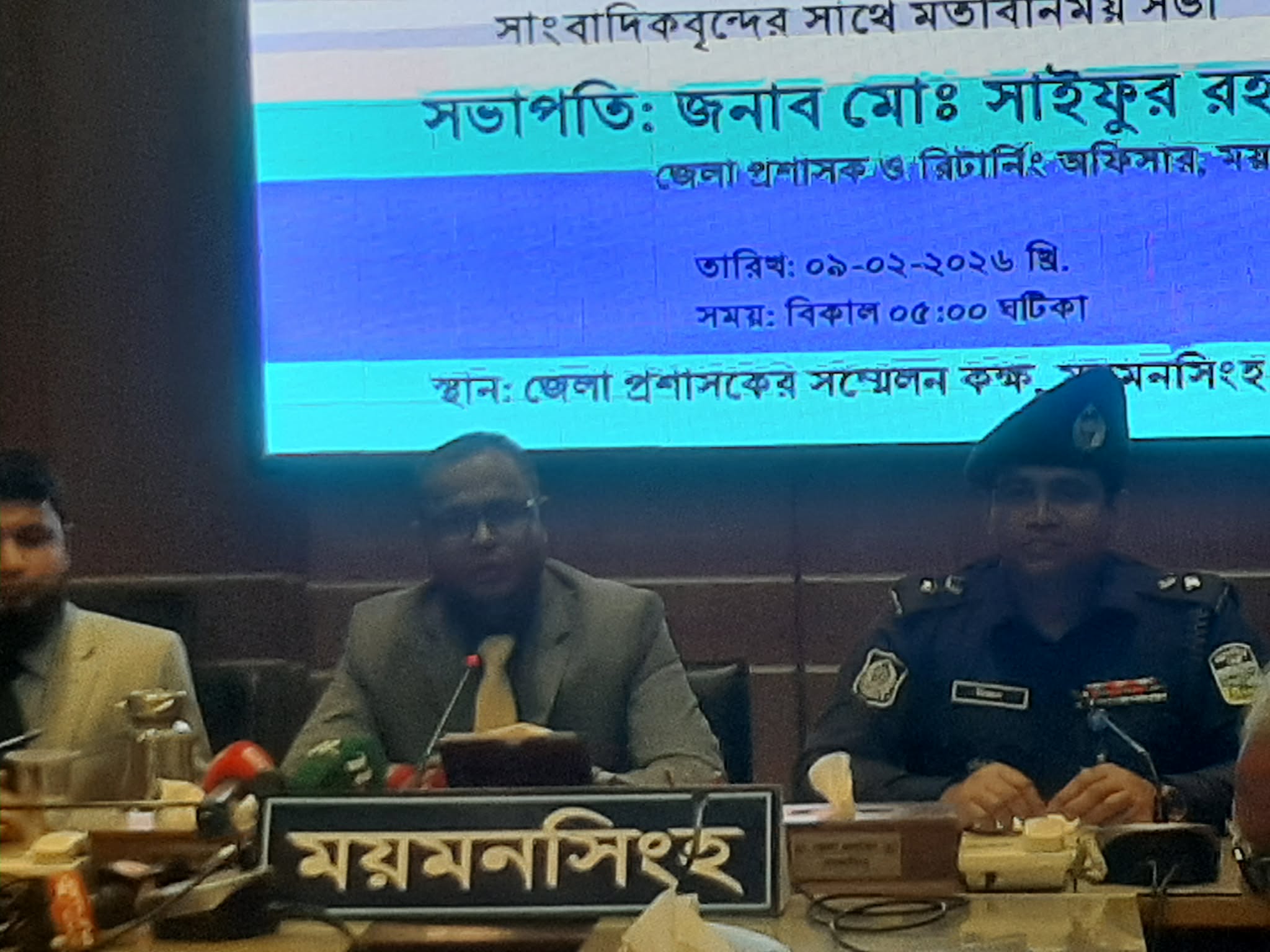 আরিফ রববানী ময়মনসিংহ: ময়মনসিংহে সুষ্ঠু, অবাধ ও নিরপেক্ষভাবে আসন্ন ত্রয়োদশ জাতীয় সংসদ নির্বাচন ও গণভোট-২০২৬ সম্পন্ন করার লক্ষ্যে সাংবাদিকদের সঙ্গে মতবিনিময় করেছে জেলা রিটার্নিং কর্মকর্তা ও জেলা প্রশাসক সাইফুর রহমান ও জেলা পুলিশ সুপার মিজানুর রহমান।