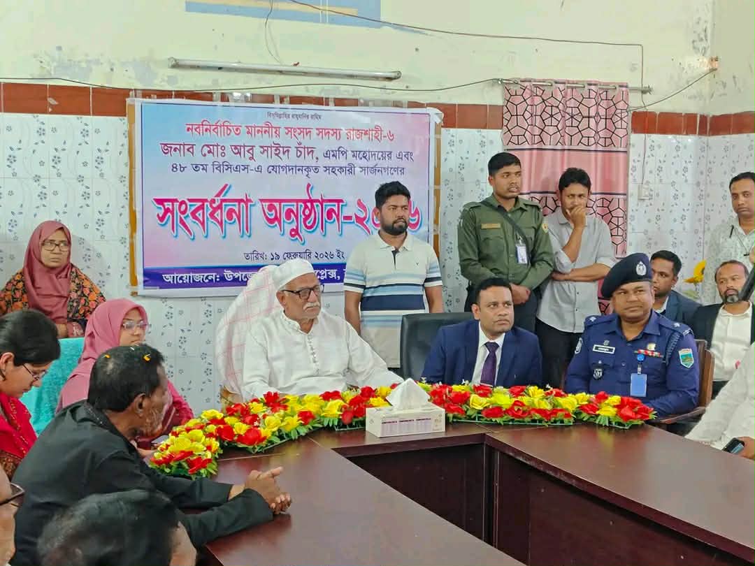 বৃহস্পতিবার (১৯ ফেব্রুয়ারি) বাঘা উপজেলা স্বাস্থ্য কমপ্লেক্স কর্তৃক আয়োজিত নবনির্বাচিত সংসদ সদস্য আবু সাঈদ চাঁদ (এমপি) ও ৪৮ তম বিসিএস -এ যোগদানকৃত সার্জনগণের সংবর্ধনা অনুষ্ঠানে তিনি এসব কথা বলেন।
