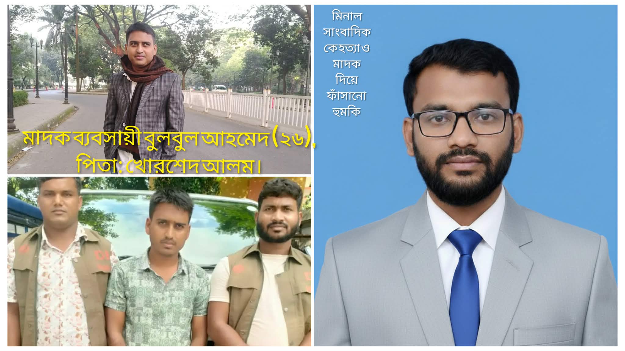 ভুক্তভোগী সাংবাদিক জানান, গত ২২ জানুয়ারি থেকে বুলবুল তার ফেসবুক আইডিতে মিনালের বিরুদ্ধে মিথ্যা ও মানহানিকর স্ট্যাটাস দিতে শুরু করে। গত ১৭ ফেব্রুয়ারি থেকে “Bulbul Ahammed” নামক ফেসবুক আইডি ও মেসেঞ্জার থেকে অকথ্য ভাষায় গালিগালাজ, মাদক দিয়ে ফাঁসানো এবং সরাসরি হত্যার হুমকি দেওয়া হচ্ছে। এমনকি গোদাগাড়ী গোল চত্বরে’ এলে দেখে নেওয়ারও চ্যালেঞ্জ ছুড়ে দিয়েছে অভিযুক্ত বুলবুল।