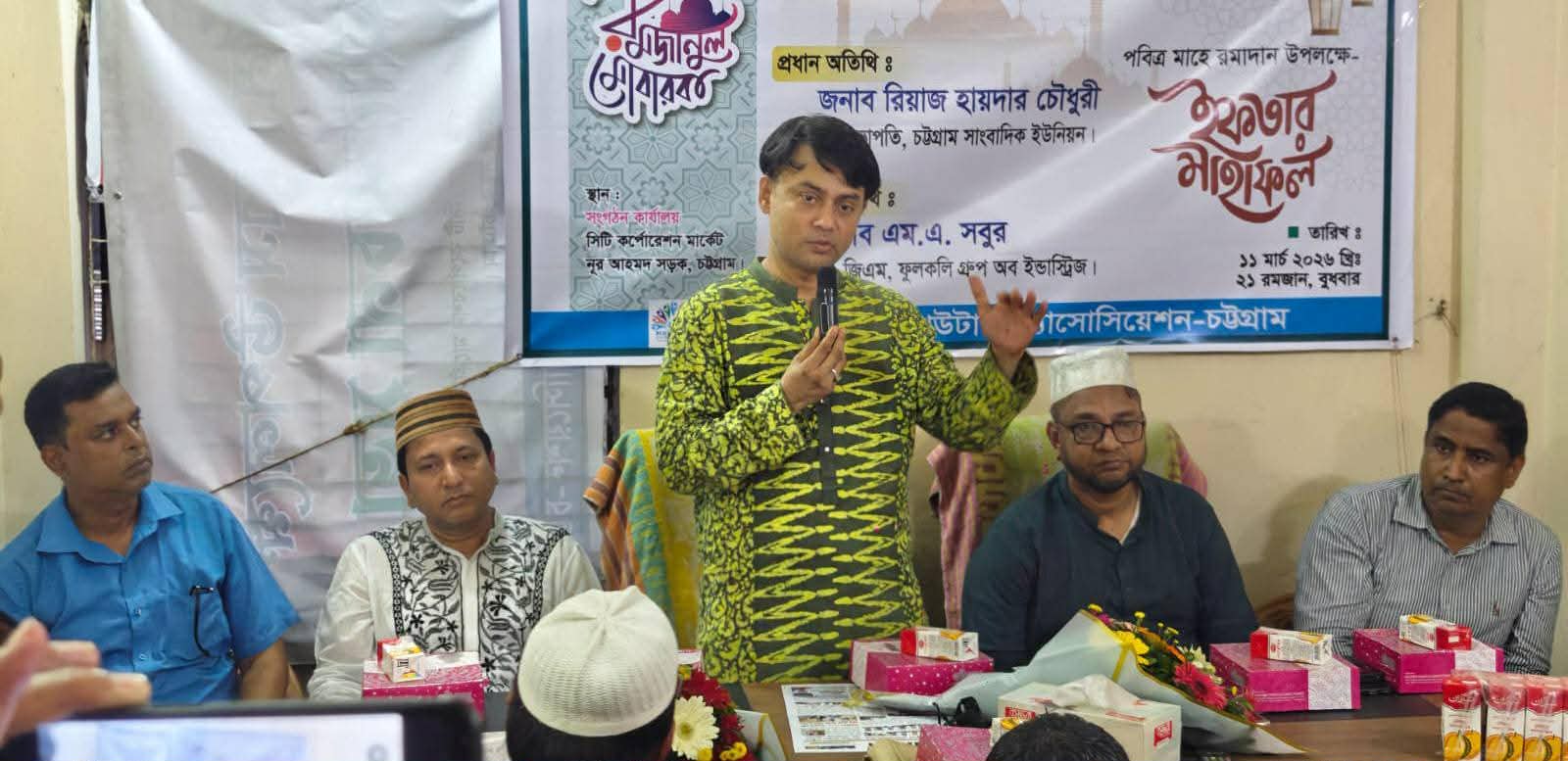 গত বুধবার (১১ মার্চ) নগরীর নূর আহম্মদ সড়কে চট্টগ্রাম সংবাদপত্র কম্পিউটার্স অ্যাসোসিয়েশনের কার্যালয়ে আয়োজিত ইফতার মাহফিল ও আলোচনা সভায় প্রধান অতিথির বক্তব্যে তিনি এসব কথা বলেন। মোহাম্মদ কায়েস চৌধুরীর সঞ্চালনায় ও সংগঠনের সভাপতি আজগর আলী সোহেলের সভাপতিত্বে অনুষ্ঠানটি অনুষ্ঠিত হয়।