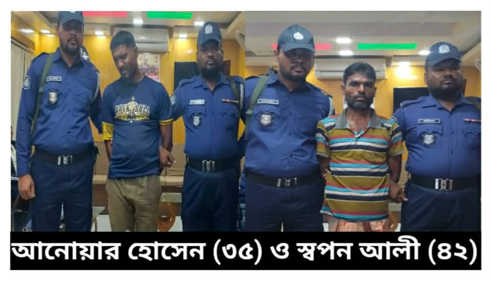আটককৃতরা হলো, বাঘা উপজেলার চকরাজাপুর ইউনিয়নের দাদপুর চর-কালিদাসখালি গ্রামের তোফাজ্জল হোসেনের ছেলে আনোয়ার হোসেন (৩৫) ও একই গ্রামের সিদ্দিক আলীর ছেলে স্বপন আলী (৪২)।