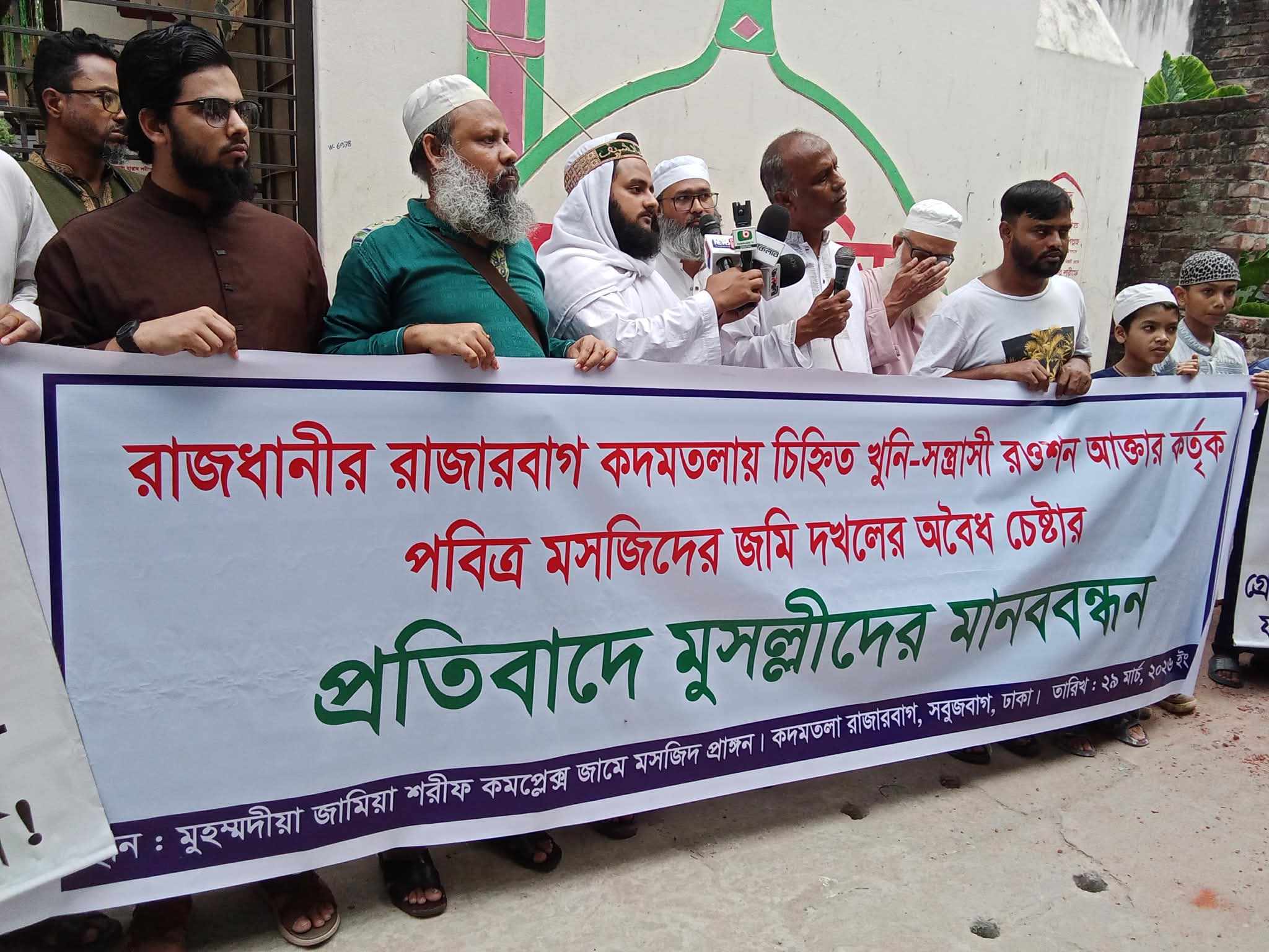 রাজধানীর রাজারবাগ কদমতলায় মসজিদের জমি দখলের চেষ্টার প্রতিবাদে মুসল্লীদের মানববন্ধন